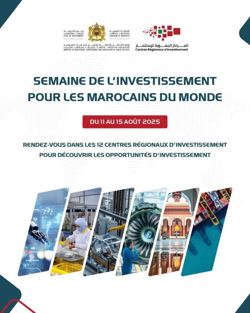 Sous l’impulsion des Hautes Orientations Royales de Sa Majesté le Roi Mohammed VI, que Dieu L’assiste, et fidèle à l’attention constante portée aux Marocains du Monde, le Centre Régional d’Investissement de Guelmim-Oued Noun a le plaisir de vous convier à la Semaine des Marocains du Monde, du 11 au 15 août 2025.